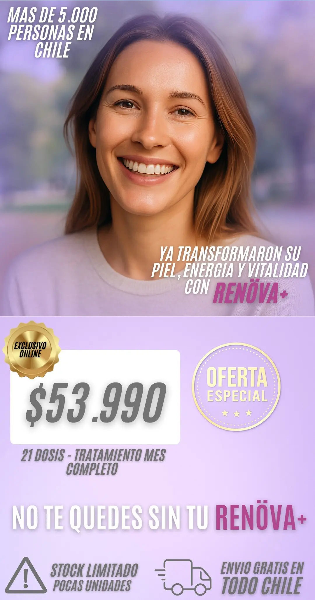 Quiero probar Renöva+ Ordenar ahora con Envió GRATIS Envíos Seguro Pago seguro Calidad Garantizada Envíos a todo chile